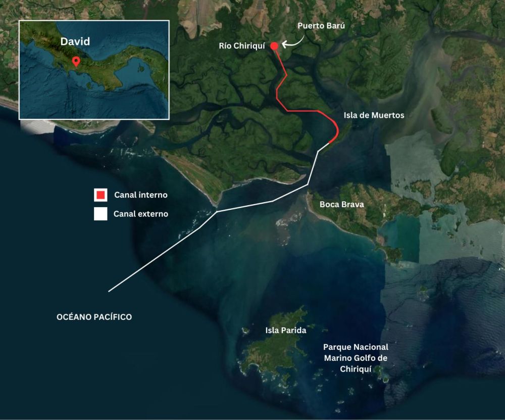 Para que los barcos puedan entrar y salir del puerto será necesario construir un canal de navegación. El canal se extenderá desde el Pacífico Norte, pasará por Boca Brava, cruzará Isla Muertos y llegará al río Chiriquí.